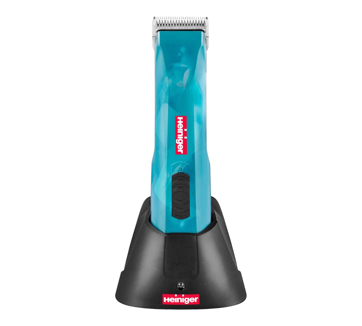 Leveres i plastikkuffert inkl. 1 batteri, bordlader, Heiniger skær 10 (1,5mm) red line, olie, rensebørste, Andis afstandskamsæt og brugsanvisning.