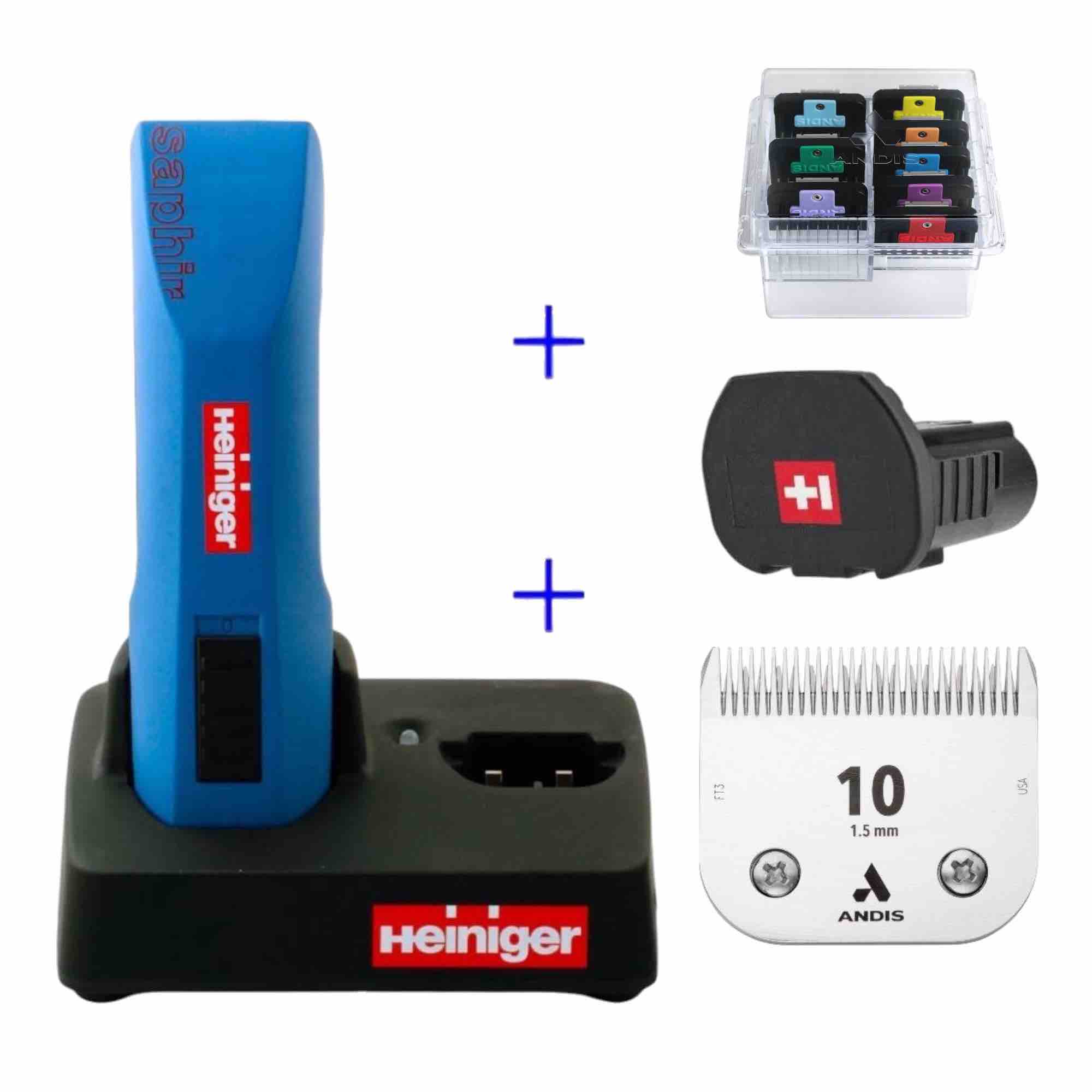 Inkl. Plastik kuffert, 1 batteri, dobbelt bordlader, Andis skær 10 (1,5mm) Ceramicedge, Andis afstandskamsæt, oplader, olie, børste og brugsanvisning.