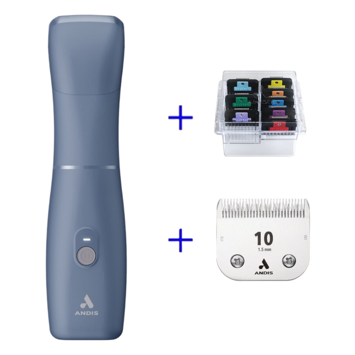 Andis eMERGE blå m/skær 10 og afstandskamsæt