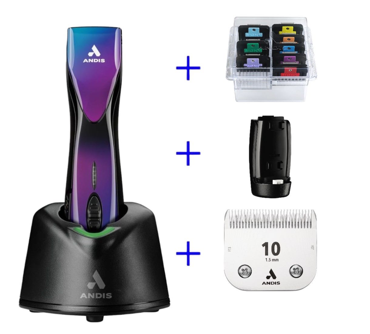 Pulse ZR 2 - 5 speed maskine med Andis keramisk skær size 10, 1 lithium-Ion batteri og Andis universal afstandskamsæt