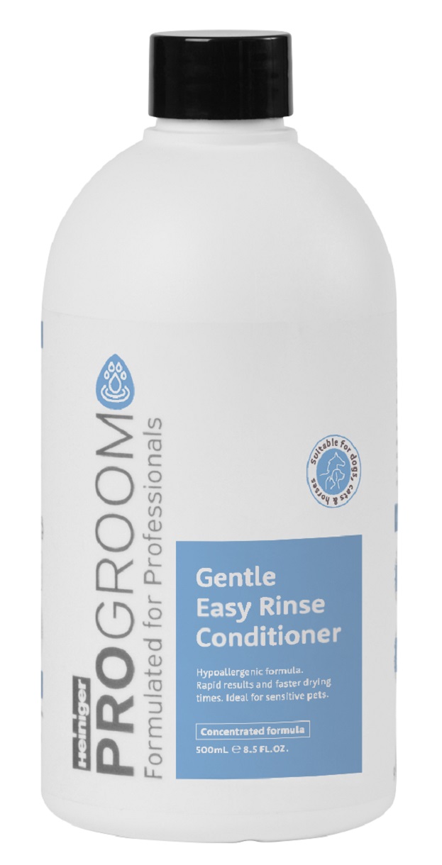 Let parfumeret er Gentle Easy Rinse en unik conditioner, der er udviklet til øjeblikkelige resultater, hurtigere udskylning og kortere tørretid. Indeholder en allergivenlig duft, naturlig aloe vera og ultra‑blødgørende ingredienser, der fugter og plejer, så pelsen bliver mere medgørlig uden at føles tung.